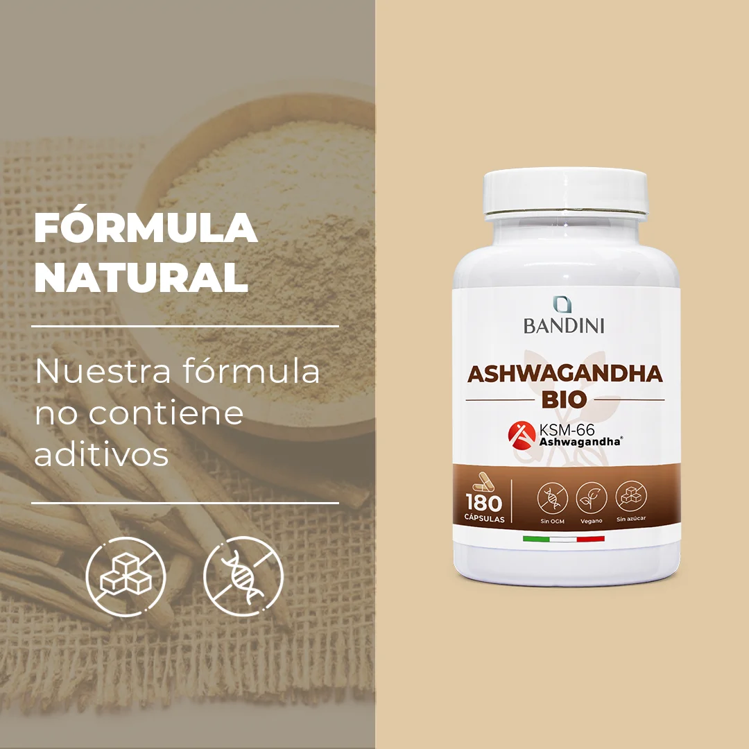 Complemento alimenticio de alta dosis con 500 mg de Ashwagandha KSM-66 por dosis diaria (1 cápsula). Envase de 180 cápsulas, suministro para seis meses.