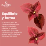 La forskolina es un extracto natural obtenido de la raíz de la planta Coleus forskohlii, conocida por sus propiedades beneficiosas. Tradicionalmente utilizada en la medicina ayurvédica, la forskolina es valorada por su papel en el apoyo de la función digestiva y la promoción del equilibrio del peso corporal, en asociación con una dieta equilibrada y un estilo de vida saludable.