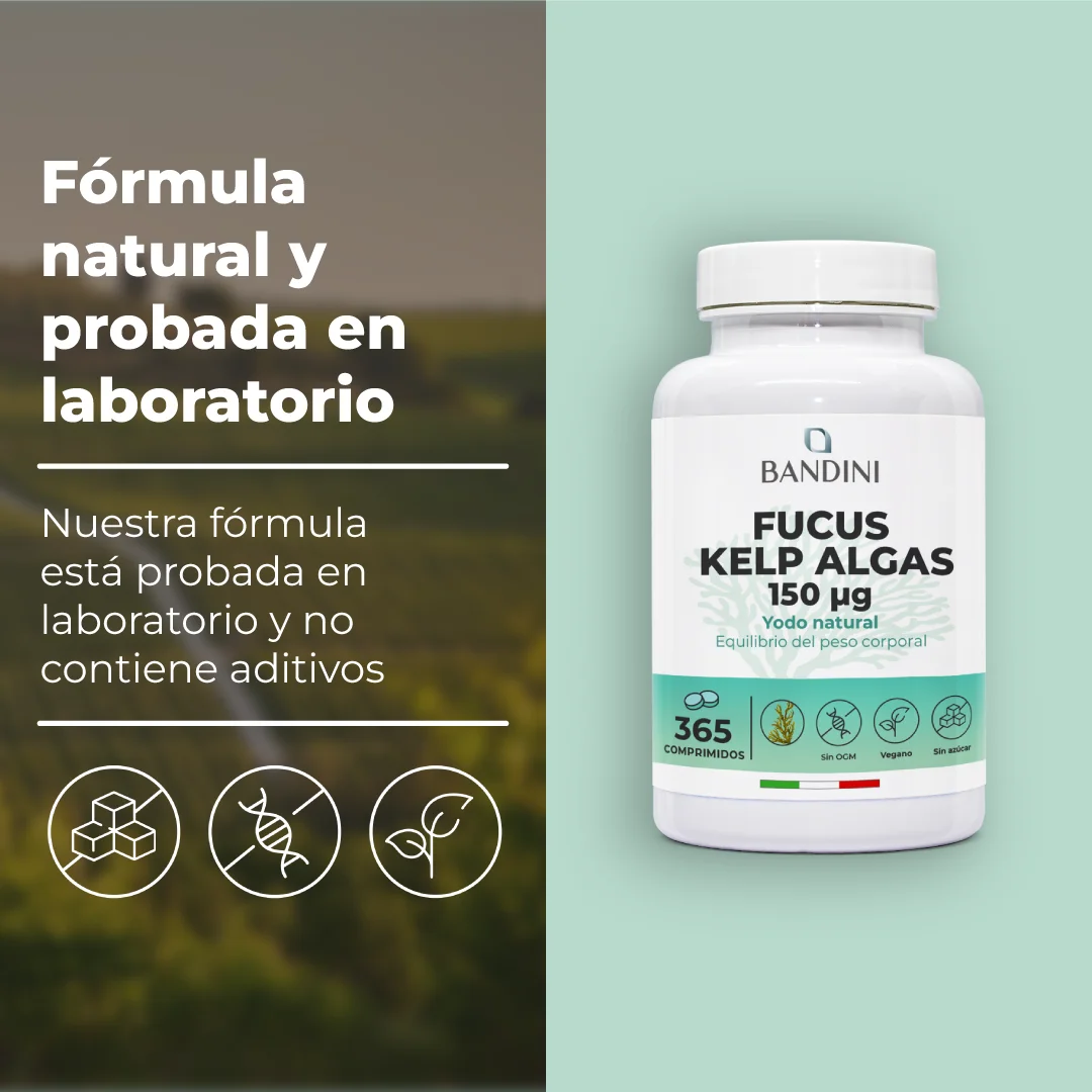Fucus Kelp Algae 150 mcg es un complemento alimenticio a base de yodo orgánico.