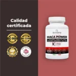 Maca Power es un complemento alimenticio a base de maca negra y tribulus terrestris, con acción tónica para combatir la fatiga física y mental. La vitamina B6 contribuye al metabolismo energético normal y a la regulación de la actividad hormonal, y junto con las vitaminas C y B12, ayuda a reducir el cansancio. La vitamina C favorece el metabolismo energético y el zinc contribuye a la fertilidad normal. El selenio apoya una espermatogénesis normal.