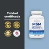 El metilsulfonilmetano (MSM) es un compuesto orgánico que contiene azufre y que suele combinarse con la vitamina C por sus efectos sinérgicos positivos. Ayudan a mantener la flexibilidad y la fuerza de las articulaciones, actúan como antioxidantes que promueven mayores niveles de energía física y apoyan el sistema inmunológico. Como ambos intervienen en la formación de colágeno, también son importantes para la salud de la piel, el cabello y las uñas.