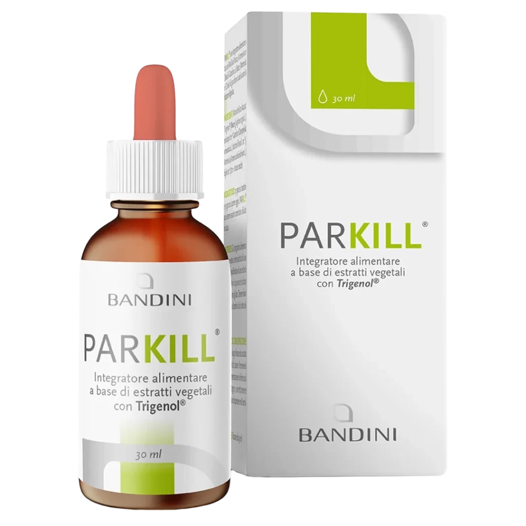 PARKILL es un complemento alimenticio a base de plantas y derivados, con Trigenol®. El efecto sinérgico de sus componentes, Juglans regia, Artemisia absinthium y Caryophillus aromaticus, ayudan a la función digestiva fisiológica.