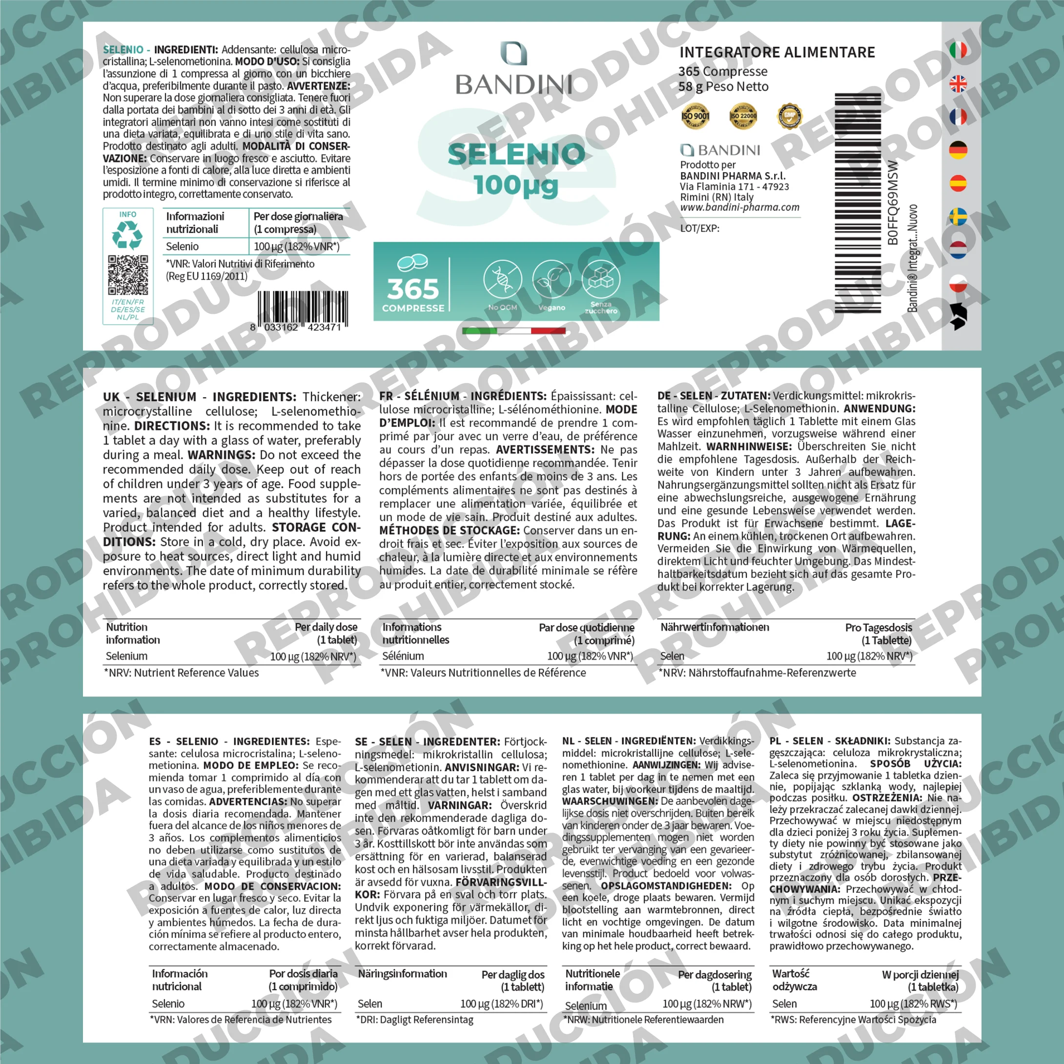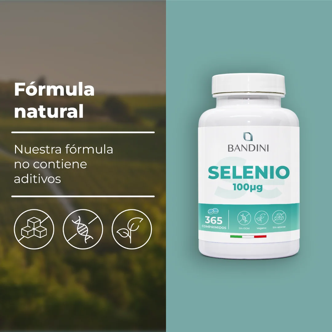 Nuestro suplemento aporta 100 mcg de selenio puro por comprimido, una dosis que cumple con la normativa italiana. ¡Con un comprimido al día, el paquete de 365 comprimidos proporciona suministro para un año completo.