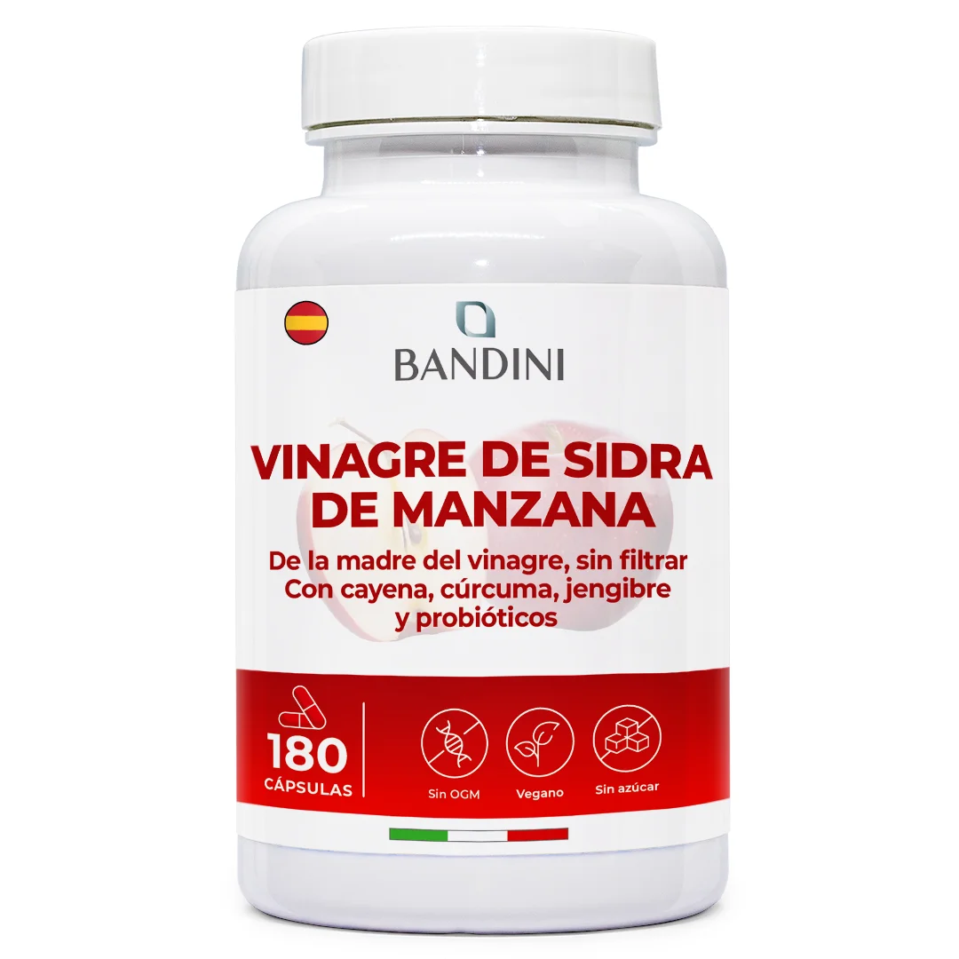 Vinagre de sidra de manzana 180 cápsulas es un complemento alimenticio a base de vinagre de sidra de manzana, enriquecido con extractos vegetales de pimienta de cayena, jengibre y cúrcuma.