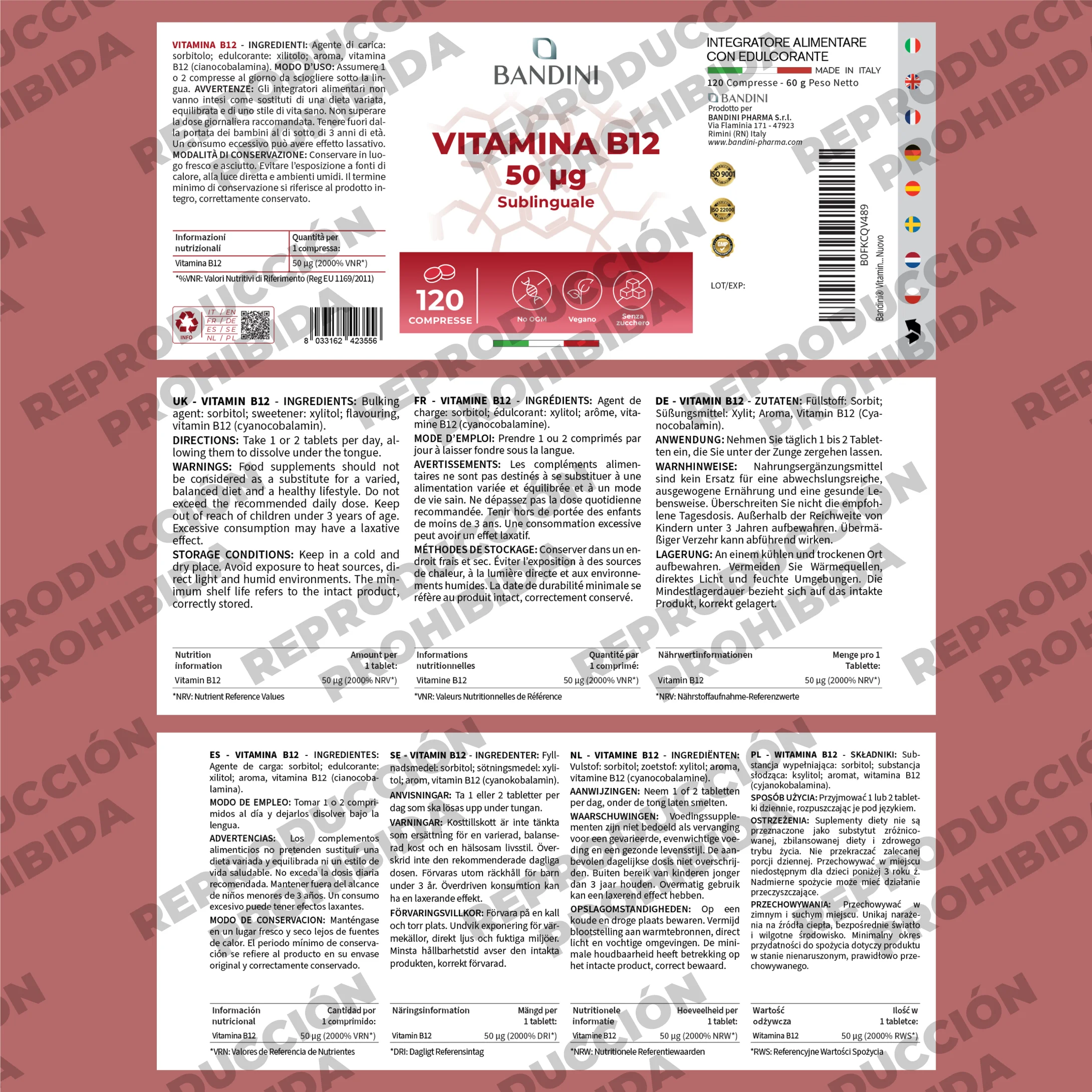 | Vitamina B12 | 50 μg (2000% VNR*) |
