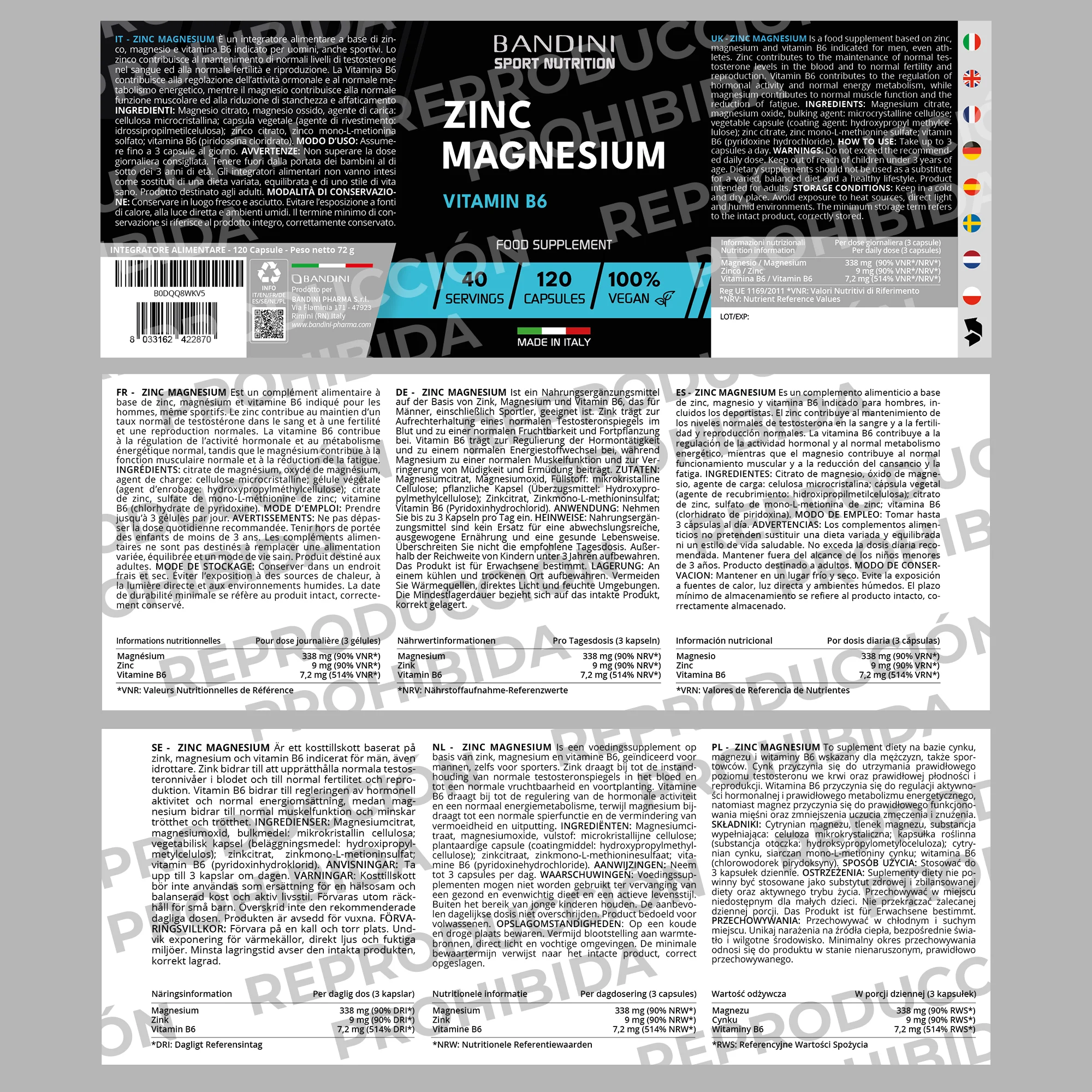Complemento alimenticio altamente dosificado con 338 mg de Magnesio, 9 mg de Zinc y 7,2 mg de Vitamina B6 por toma diaria (3 cápsulas). Envase de 120 cápsulas, cobertura por un mes más (40 dosis).